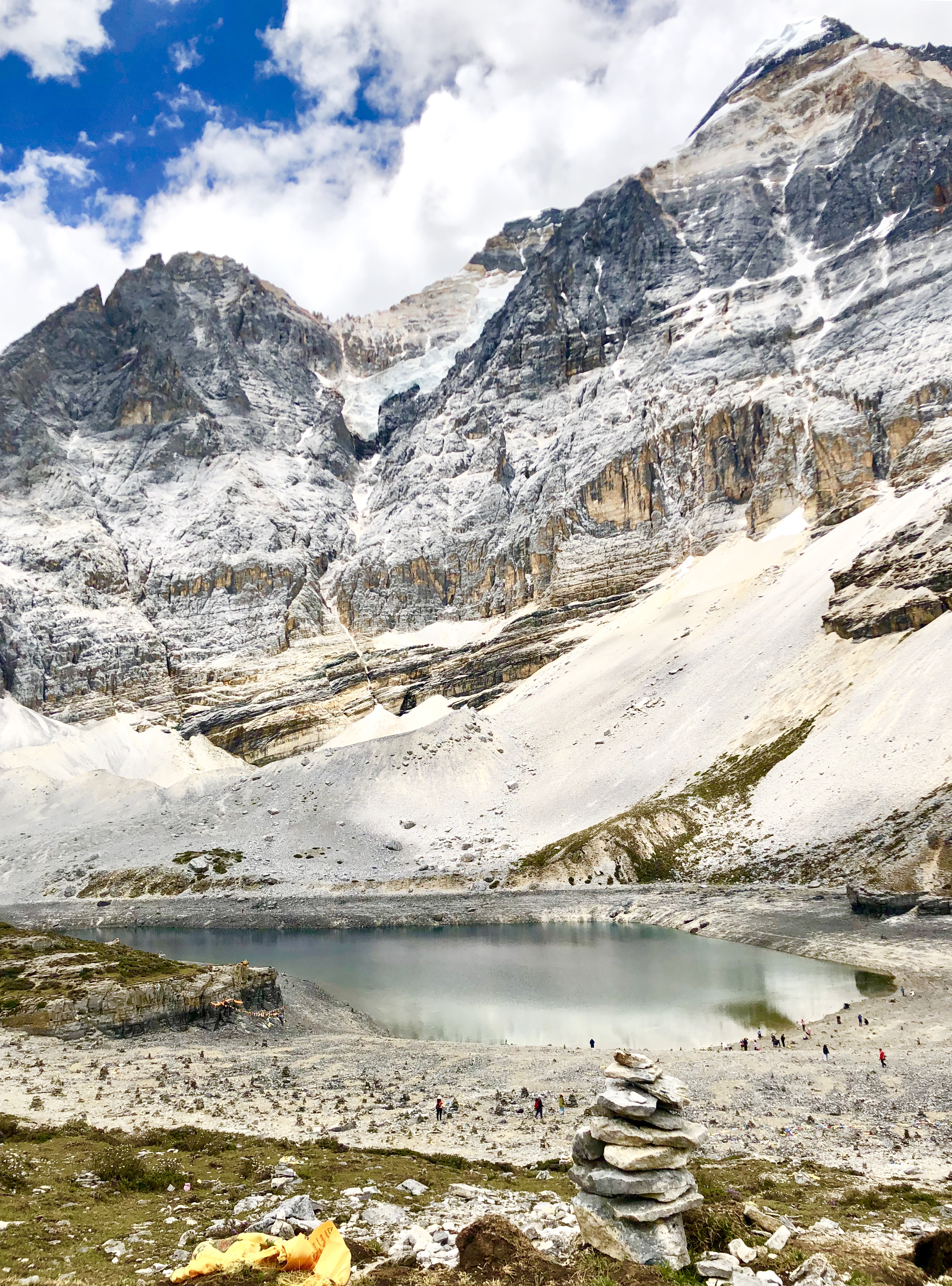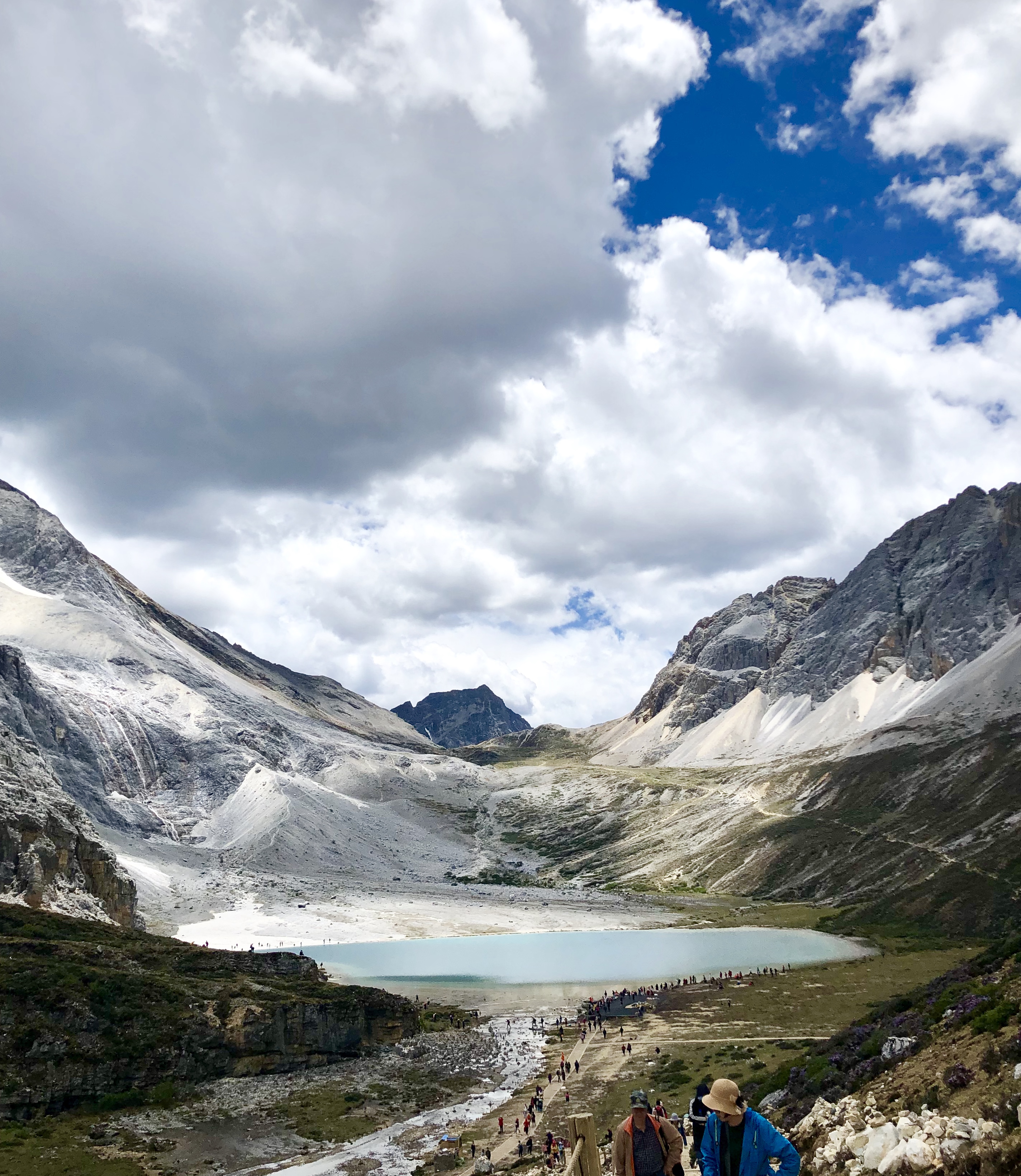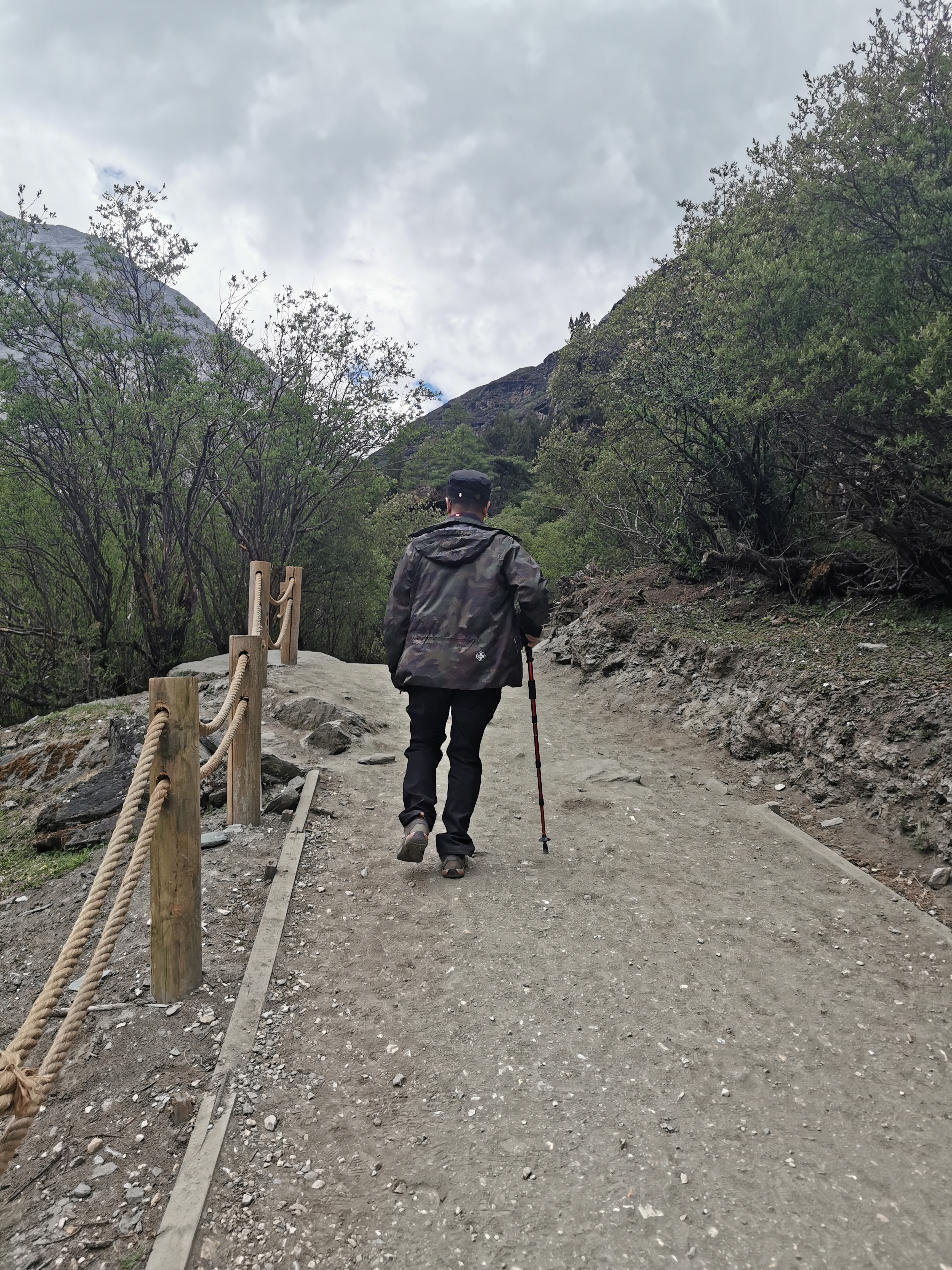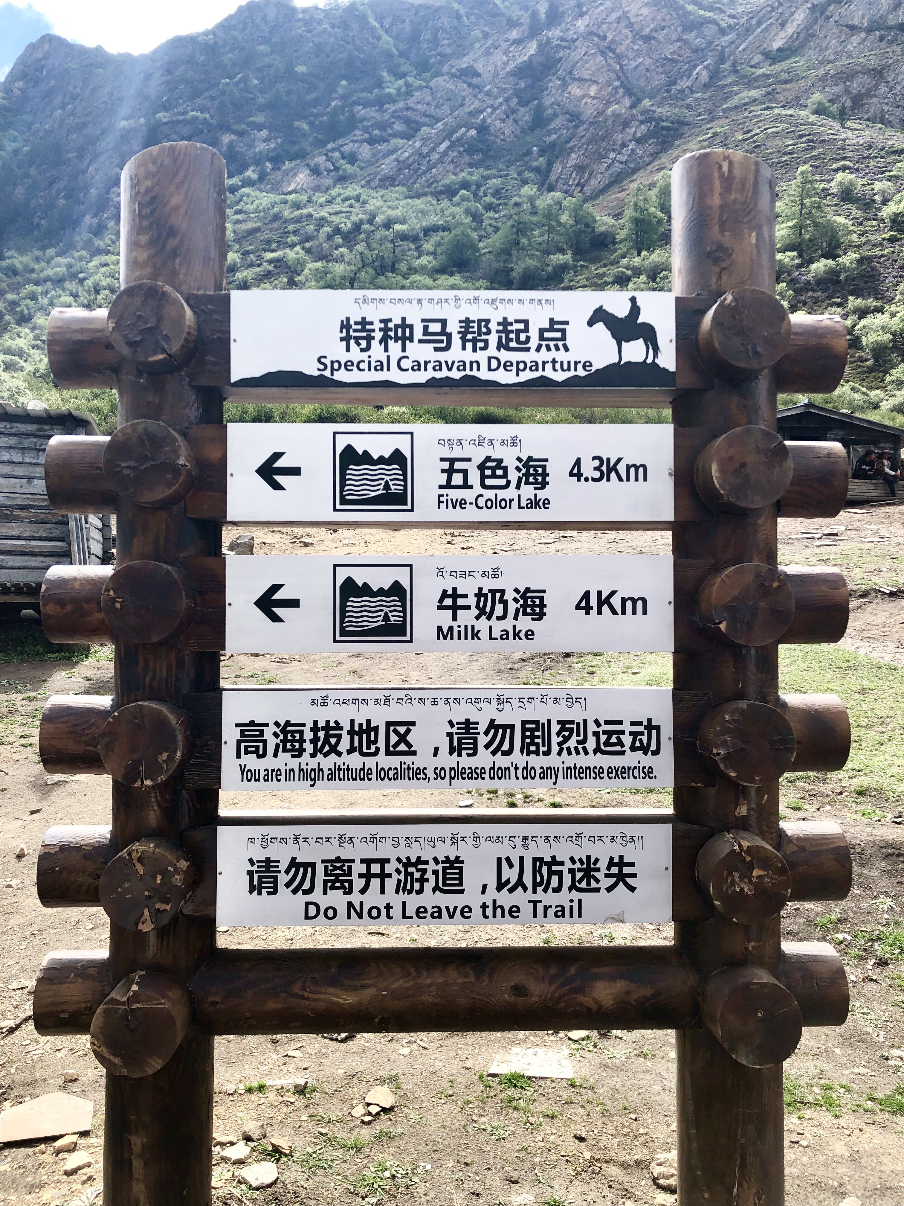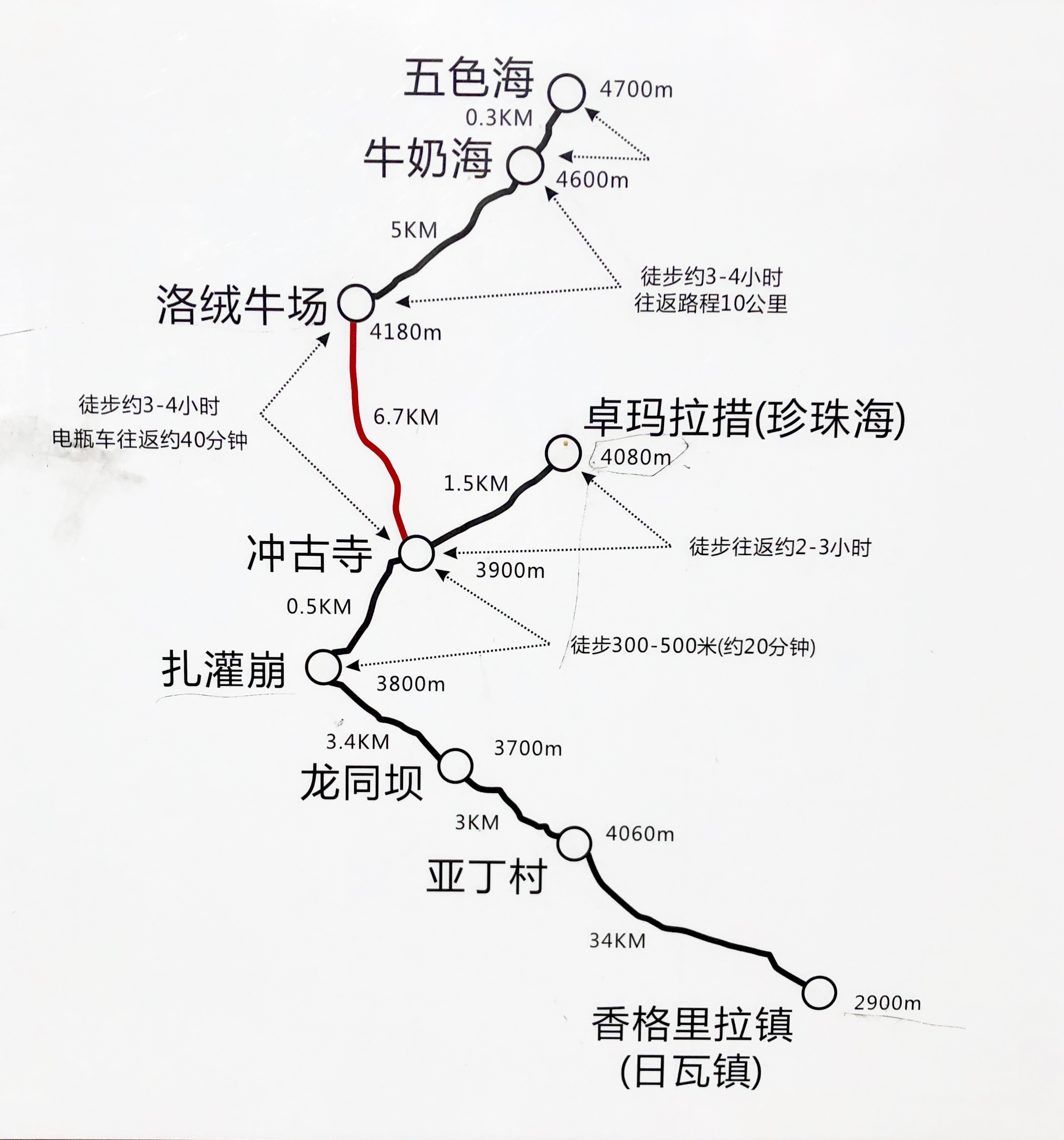 11:40从洛绒牛场(海拔4180m)开始,走山路,嗅马粪味 ,登天梯,一步比一步艰难,用了3小时到达牛奶海(4600m),3小时原路返回,全程约11公里。