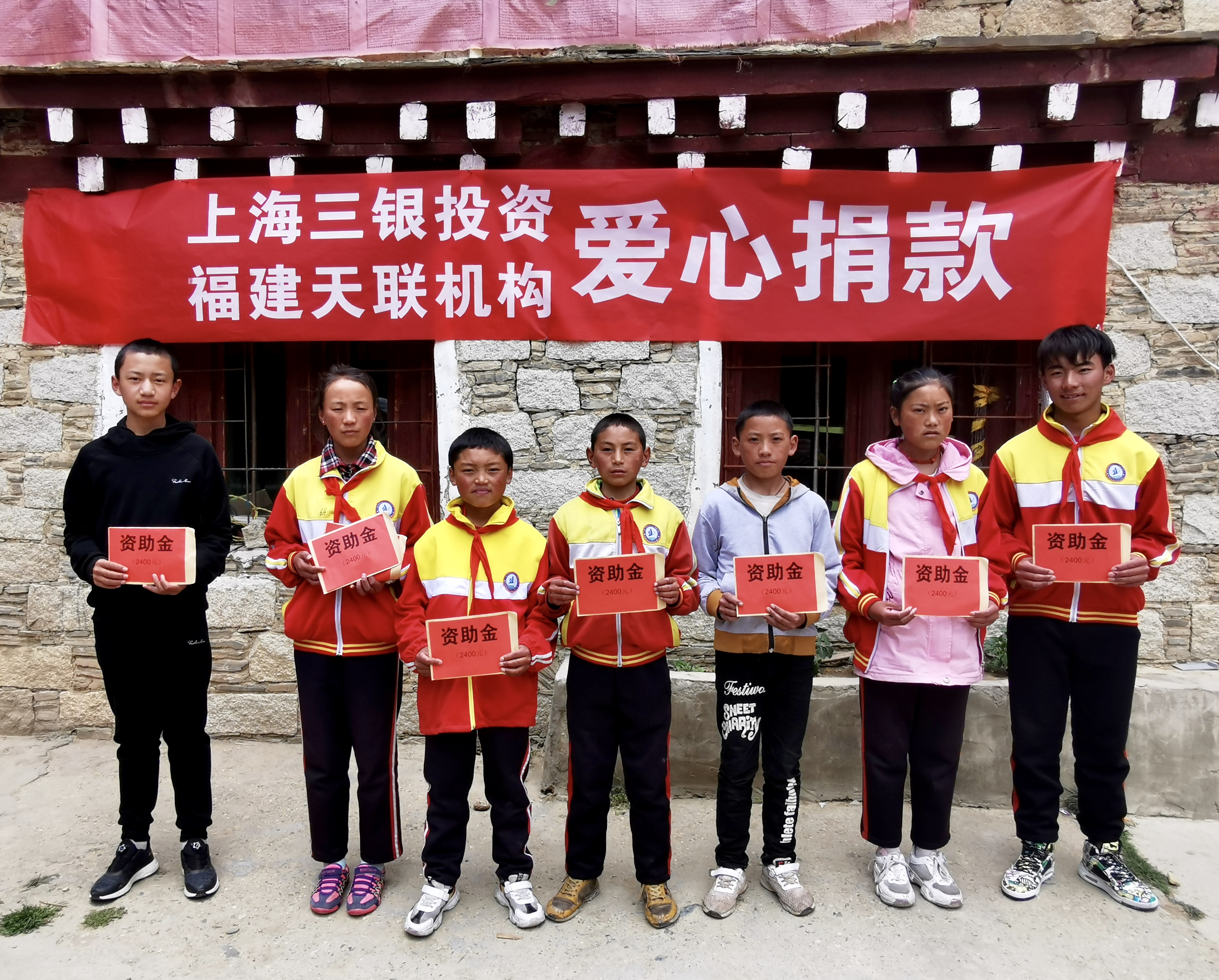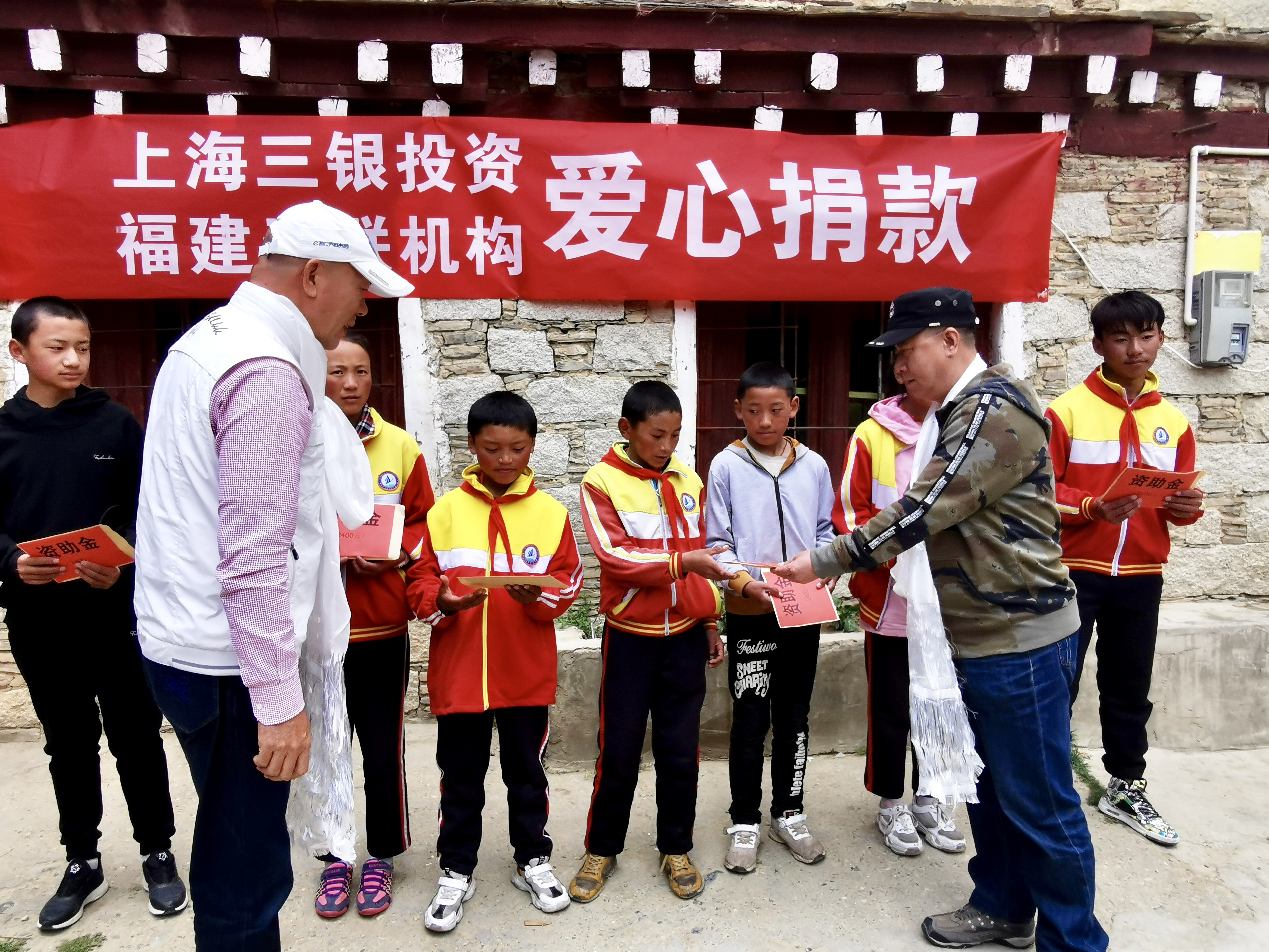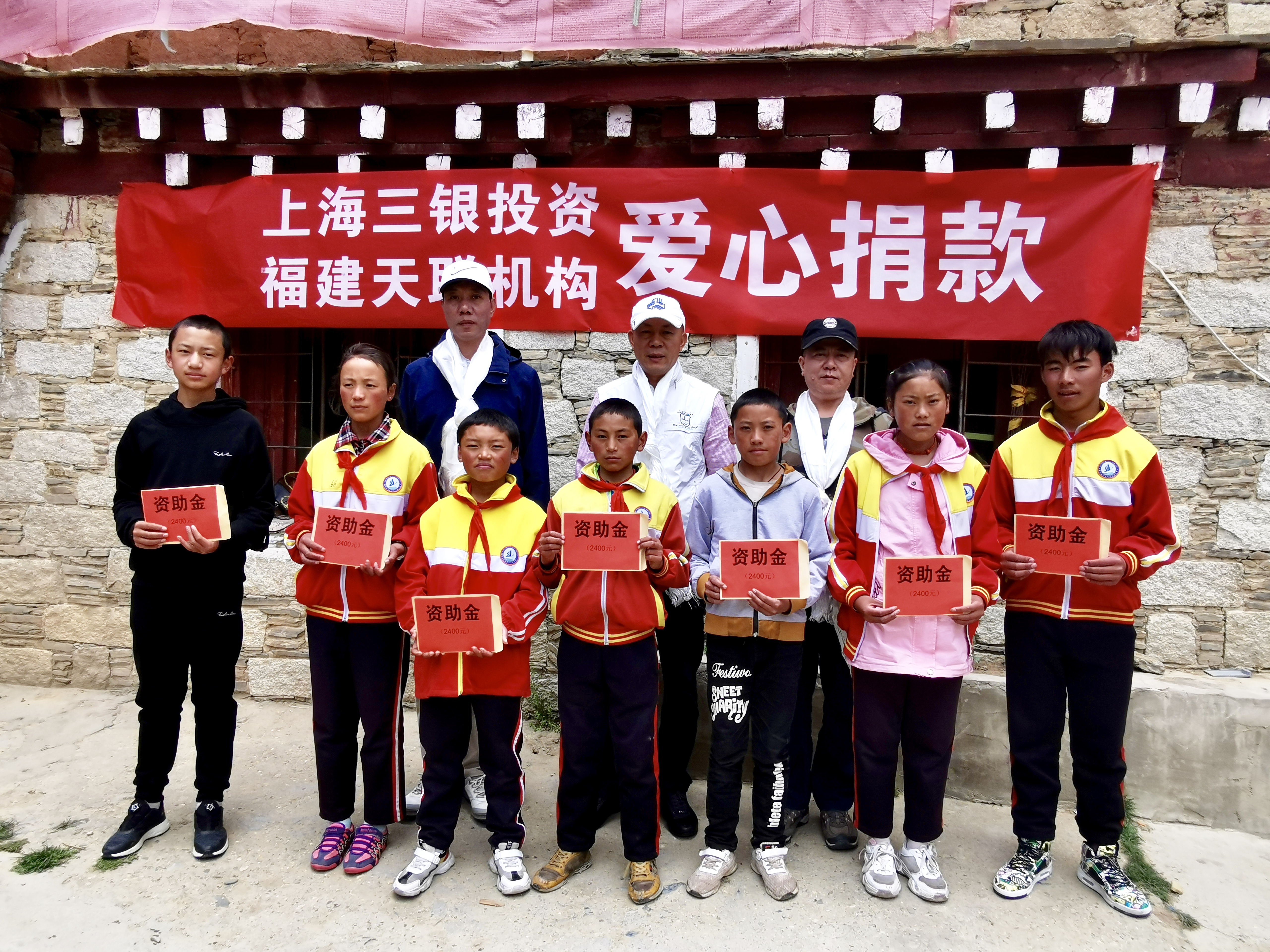 本次行动由上海三银投资管理有限公司和天联(福建)企业运营管理咨询股份有限公司共同发起,资助8名理塘县第四完全中心小学贫困学生,活动现场得到福建半岛翡丽餐饮管理有限公司总经理任志坚,以及队友李艳雯的大爱支持,其中:上海三银投资黄银贤董事长资助3名、福建天联机构资助3名、半岛翡丽任志坚总经理和队友李艳雯各资助1名贫困学生至大学毕业期间在校生活费。